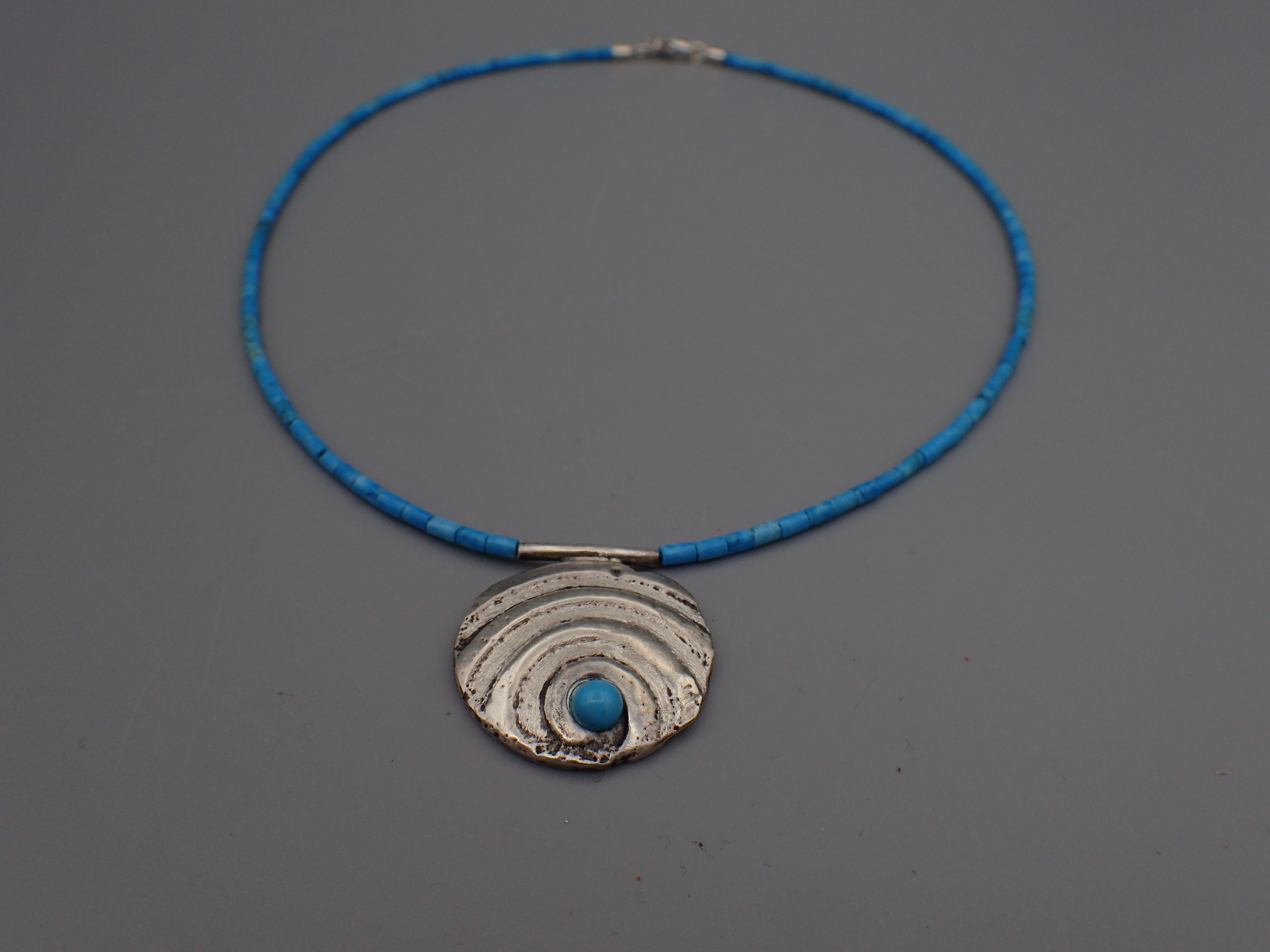 Türkisanhänger aus recyceltem Silber an Howlithkette